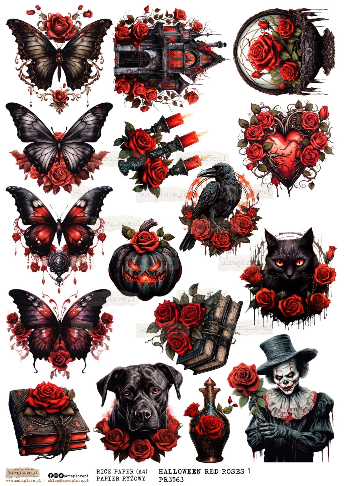 HALLOWEEN RED ROSES 1 - WYDRUK NA PAPIERZE