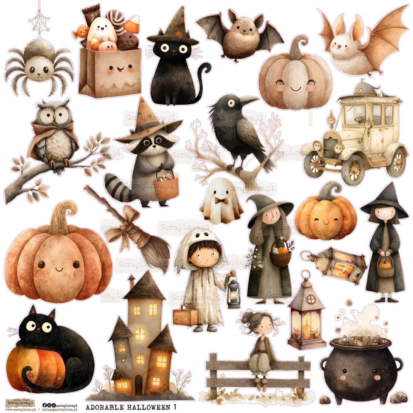 Zestaw elementów samoprzylepnych na arkuszu 24x24cm w wersji na papierze lub na przezroczystej folii.