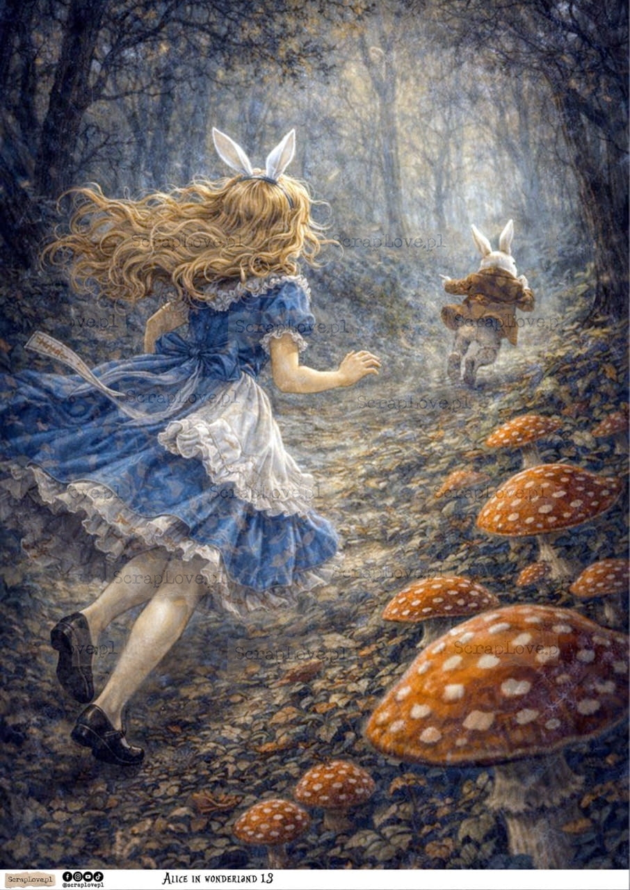 ALICE, ALICJA, ALICE IN WONDERLAND, ALICJA W KRAINIE CZARÓW, KRAINA CZARÓW, KARTY, FANTAZJA, BAJKA, KSIĄŻKA, NAPISY, CYTATY, DECOUPAGE, PAPIER RYŻOWY, RICE PAPER, WYDRUK NA PAPIERZE, PAPER PRINT, 250G, VELIUM PAPER, KALKA, WYDRUK NA KALCE
