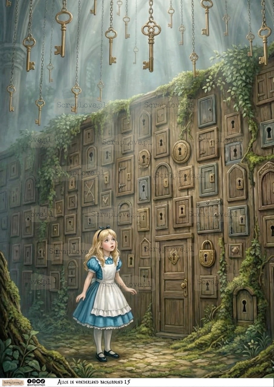ALICE, ALICJA, ALICE IN WONDERLAND, ALICJA W KRAINIE CZARÓW, KRAINA CZARÓW, KARTY, FANTAZJA, BAJKA, KSIĄŻKA, NAPISY, CYTATY, DECOUPAGE, PAPIER RYŻOWY, RICE PAPER, WYDRUK NA PAPIERZE, PAPER PRINT, 250G, VELIUM PAPER, KALKA, WYDRUK NA KALCE