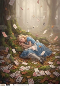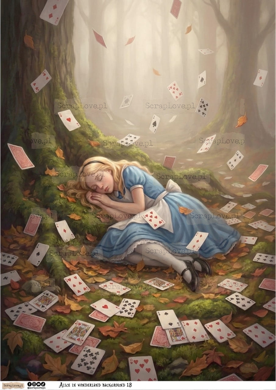 ALICE, ALICJA, ALICE IN WONDERLAND, ALICJA W KRAINIE CZARÓW, KRAINA CZARÓW, KARTY, FANTAZJA, BAJKA, KSIĄŻKA, NAPISY, CYTATY, DECOUPAGE, PAPIER RYŻOWY, RICE PAPER, WYDRUK NA PAPIERZE, PAPER PRINT, 250G, VELIUM PAPER, KALKA, WYDRUK NA KALCE