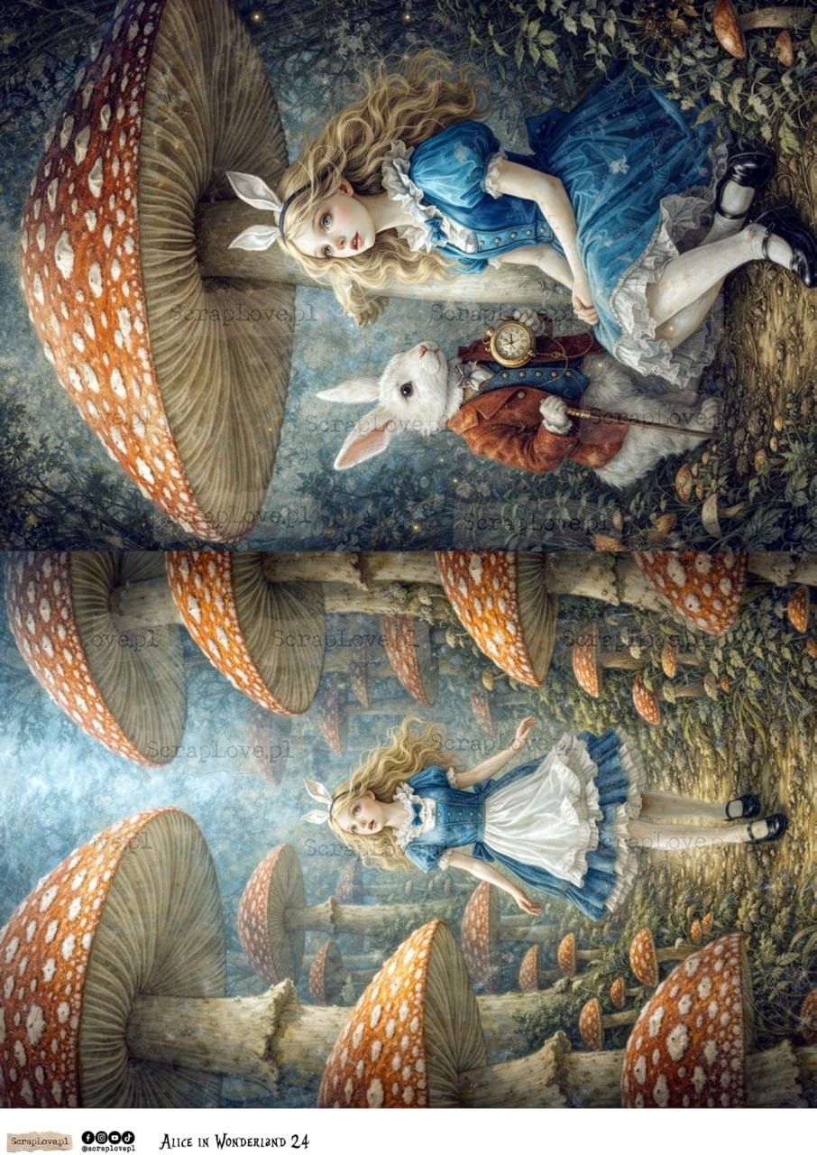 ALICE, ALICJA, ALICE IN WONDERLAND, ALICJA W KRAINIE CZARÓW, KRAINA CZARÓW, KARTY, FANTAZJA, BAJKA, KSIĄŻKA, NAPISY, CYTATY, DECOUPAGE, PAPIER RYŻOWY, RICE PAPER, WYDRUK NA PAPIERZE, PAPER PRINT, 250G, VELIUM PAPER, KALKA, WYDRUK NA KALCE