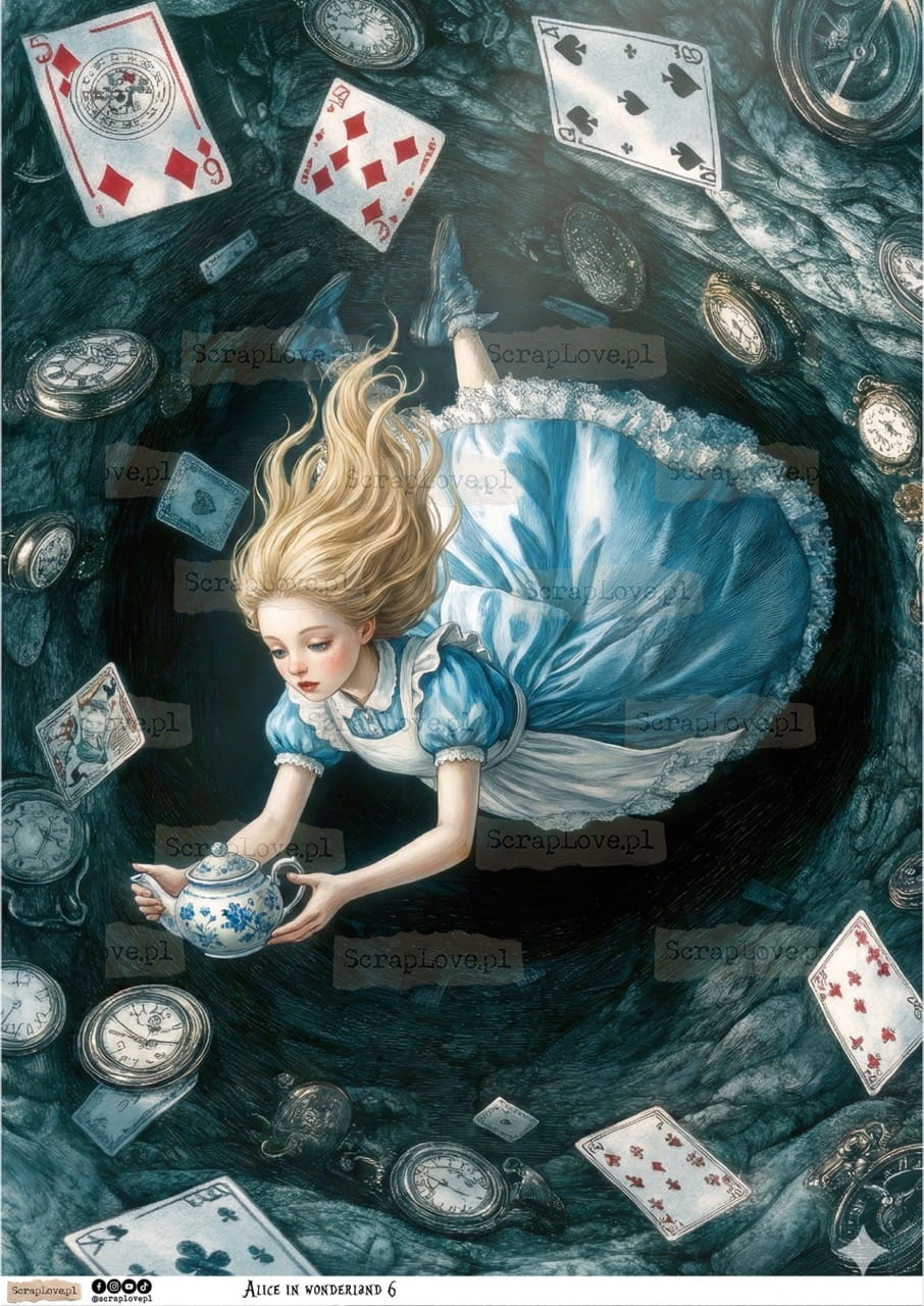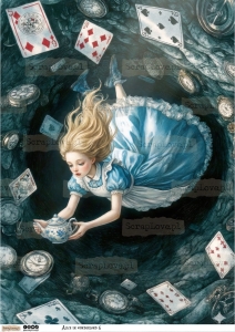 ALICE, ALICJA, ALICE IN WONDERLAND, ALICJA W KRAINIE CZARÓW, KRAINA CZARÓW, KARTY, FANTAZJA, BAJKA, KSIĄŻKA, NAPISY, CYTATY, DECOUPAGE, PAPIER RYŻOWY, RICE PAPER, WYDRUK NA PAPIERZE, PAPER PRINT, 250G, VELIUM PAPER, KALKA, WYDRUK NA KALCE