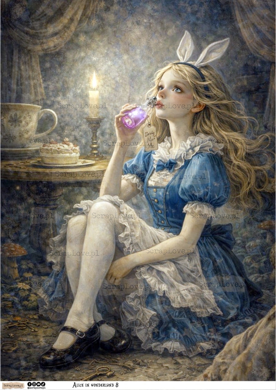 ALICE, ALICJA, ALICE IN WONDERLAND, ALICJA W KRAINIE CZARÓW, KRAINA CZARÓW, KARTY, FANTAZJA, BAJKA, KSIĄŻKA, NAPISY, CYTATY, DECOUPAGE, PAPIER RYŻOWY, RICE PAPER, WYDRUK NA PAPIERZE, PAPER PRINT, 250G, VELIUM PAPER, KALKA, WYDRUK NA KALCE