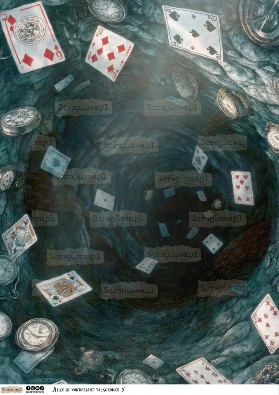 ALICE, ALICJA, ALICE IN WONDERLAND, ALICJA W KRAINIE CZARÓW, KRAINA CZARÓW, KARTY, FANTAZJA, BAJKA, KSIĄŻKA, NAPISY, CYTATY, DECOUPAGE, PAPIER RYŻOWY, RICE PAPER, WYDRUK NA PAPIERZE, PAPER PRINT, 250G, VELIUM PAPER, KALKA, WYDRUK NA KALCE