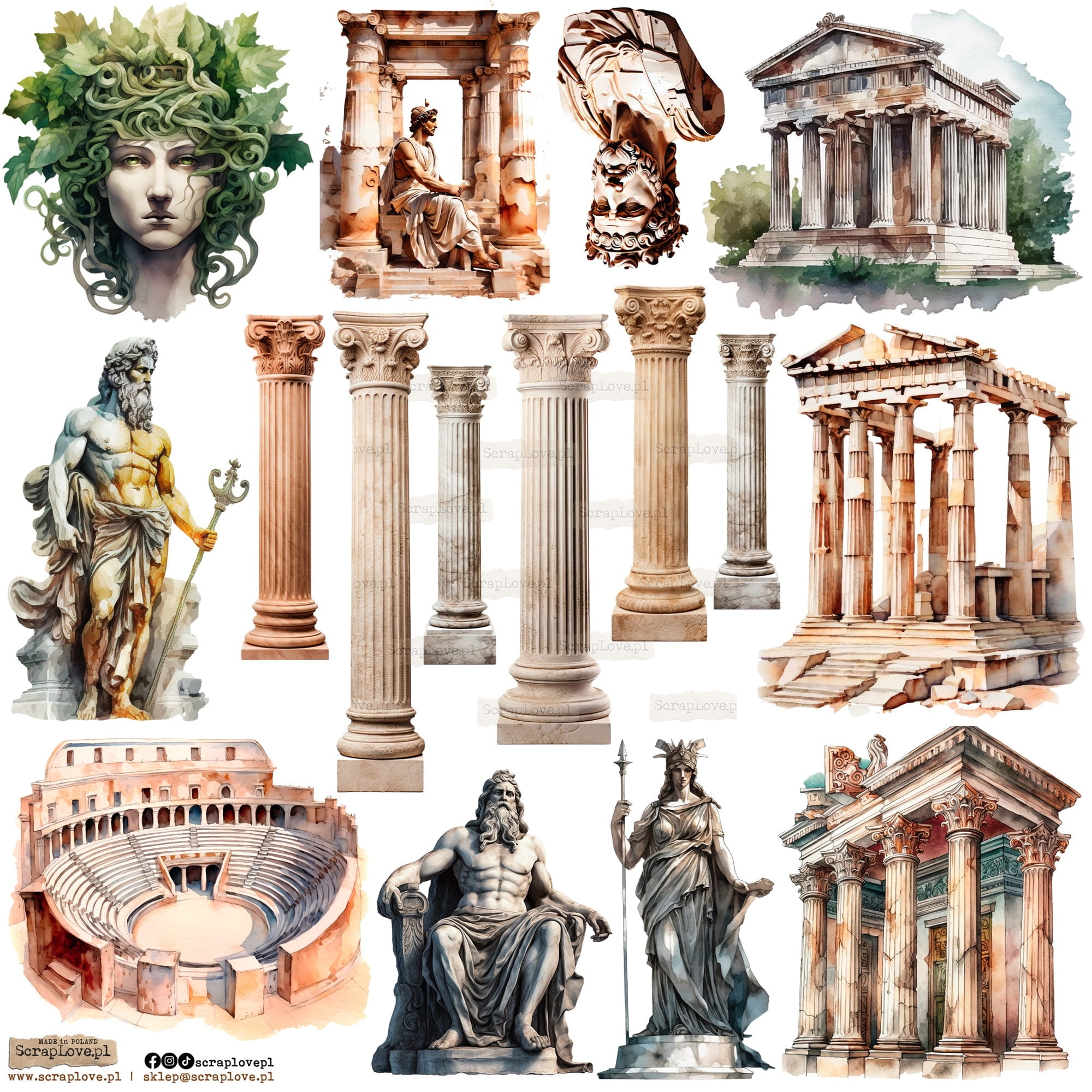 Zestaw elementów samoprzylepnych na arkuszu 24x24cm w wersji na papierze lub na przezroczystej folii.