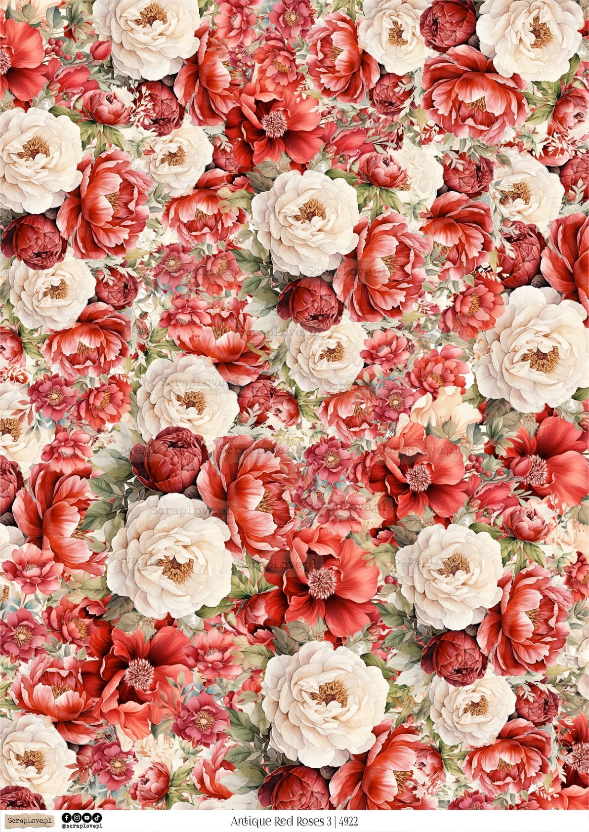 ANTIQUE RED ROSES 3 - 4922 - DRUK NA PAPIERZE