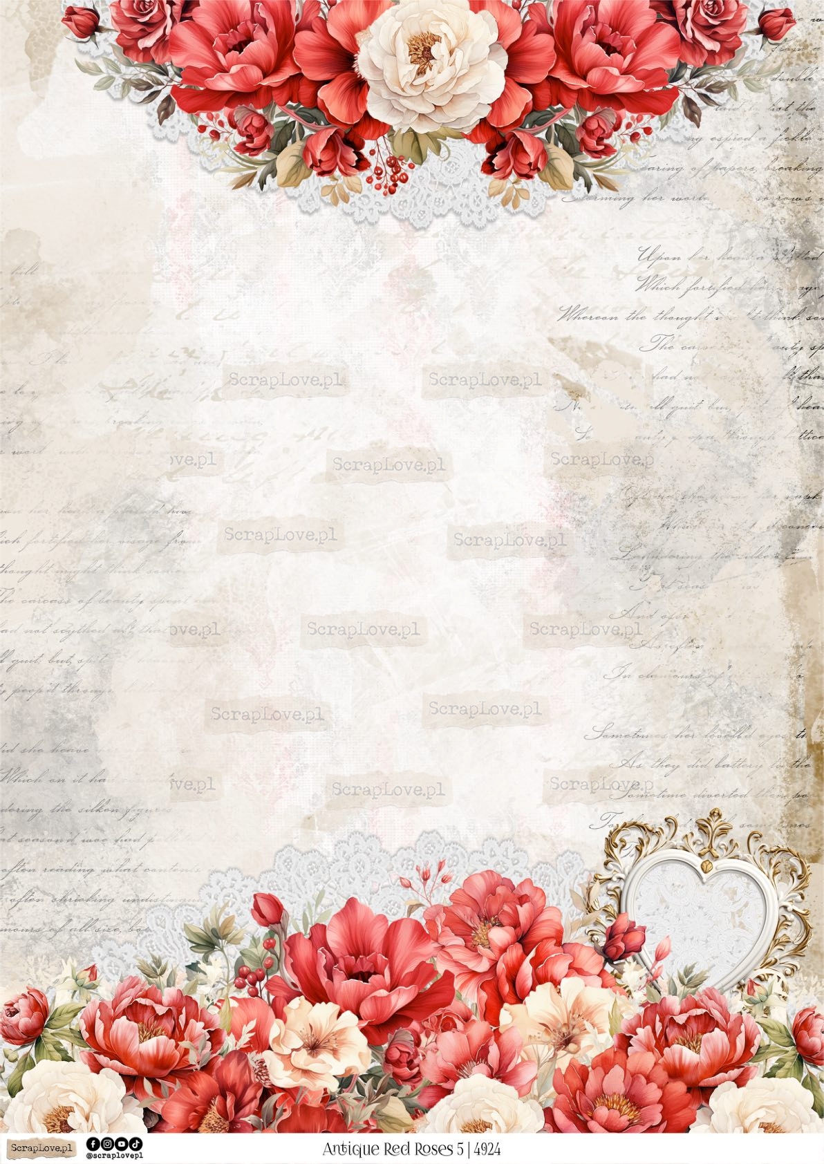 ANTIQUE RED ROSES 5 - 4924 - DRUK NA PAPIERZE
