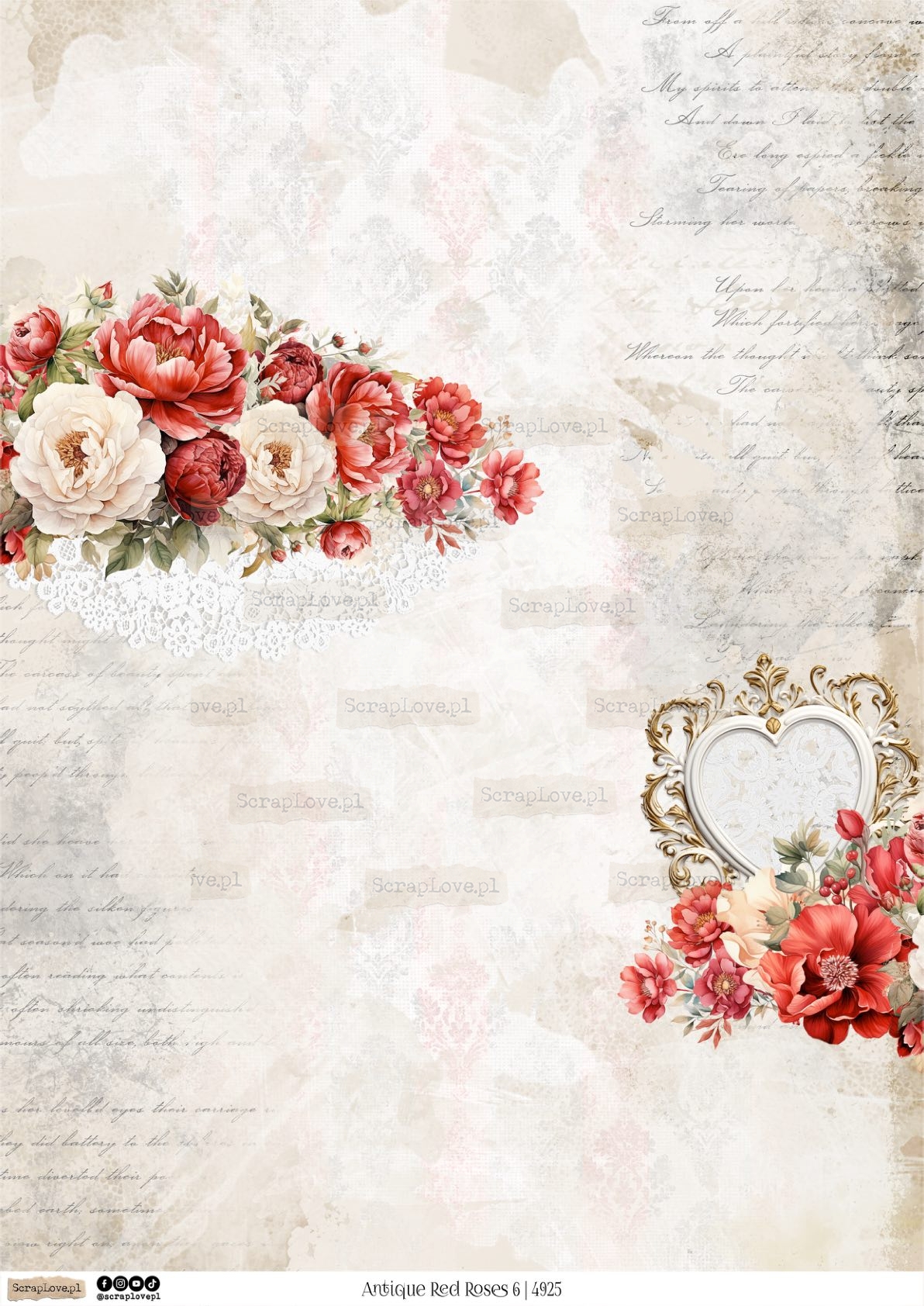 ANTIQUE RED ROSES 6 - 4925 - DRUK NA PAPIERZE