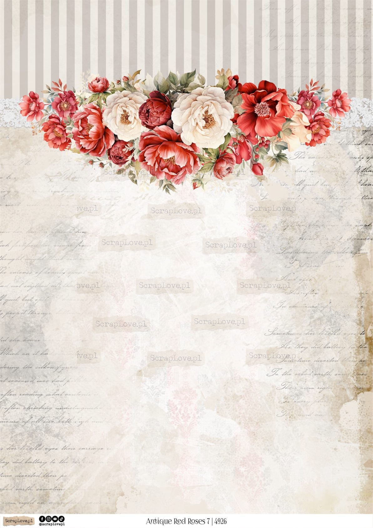 ANTIQUE RED ROSES 7 - 4926 - DRUK NA PAPIERZE
