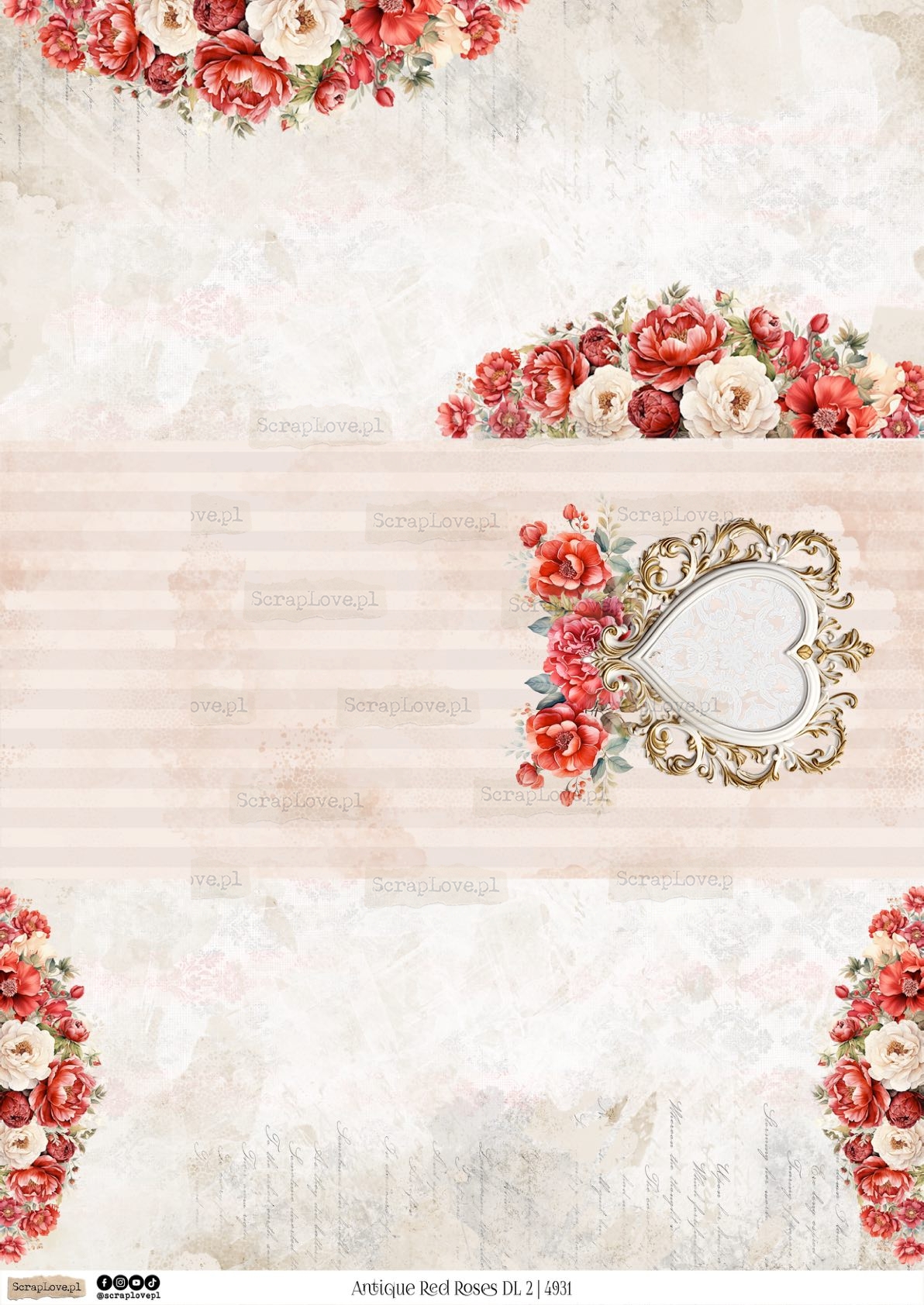 ANTIQUE RED ROSES DL 2 - 4931 - DRUK NA PAPIERZE