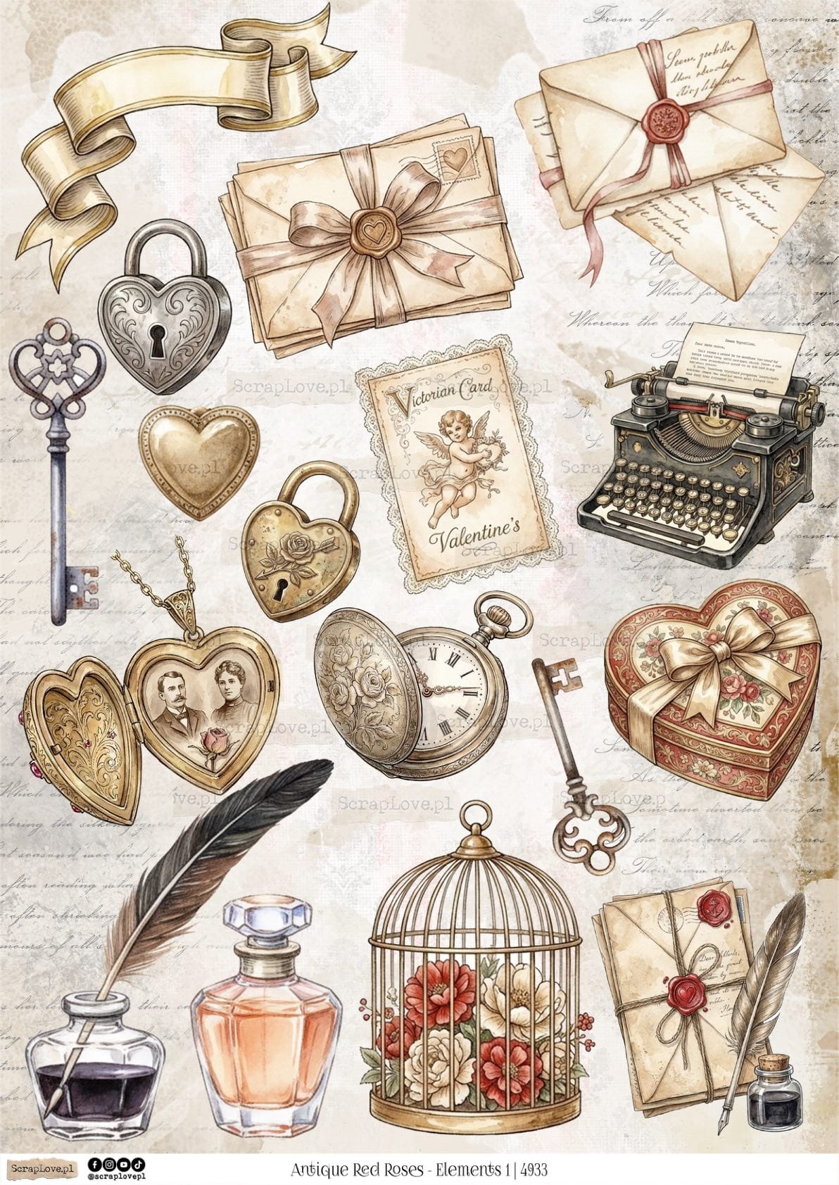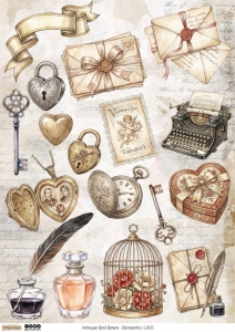 ANTIQUE RED ROSES ELEMENTS - 4933 - DRUK NA PAPIERZE