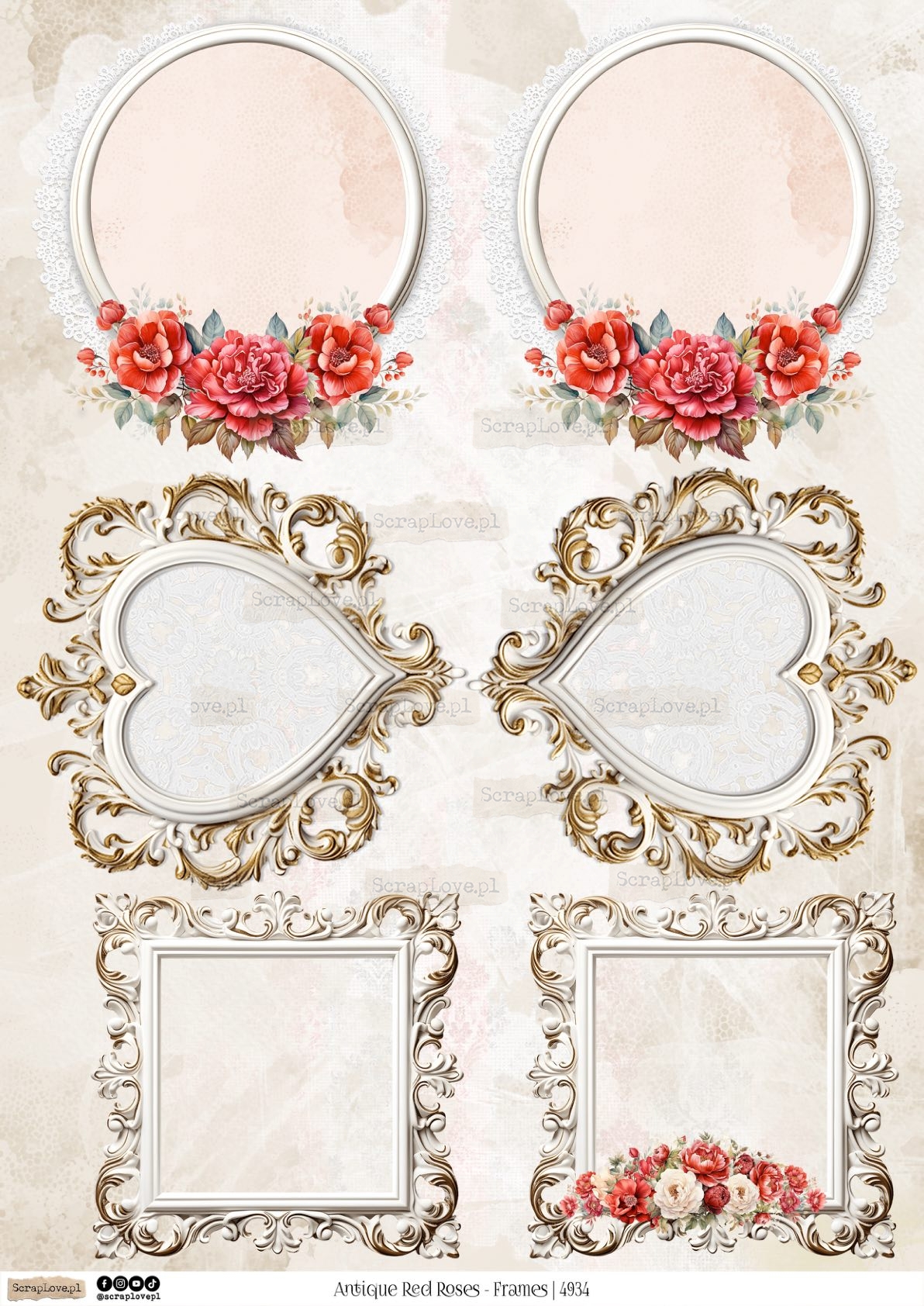 ANTIQUE RED ROSES FRAMES 1 - 4934 - DRUK NA PAPIERZE