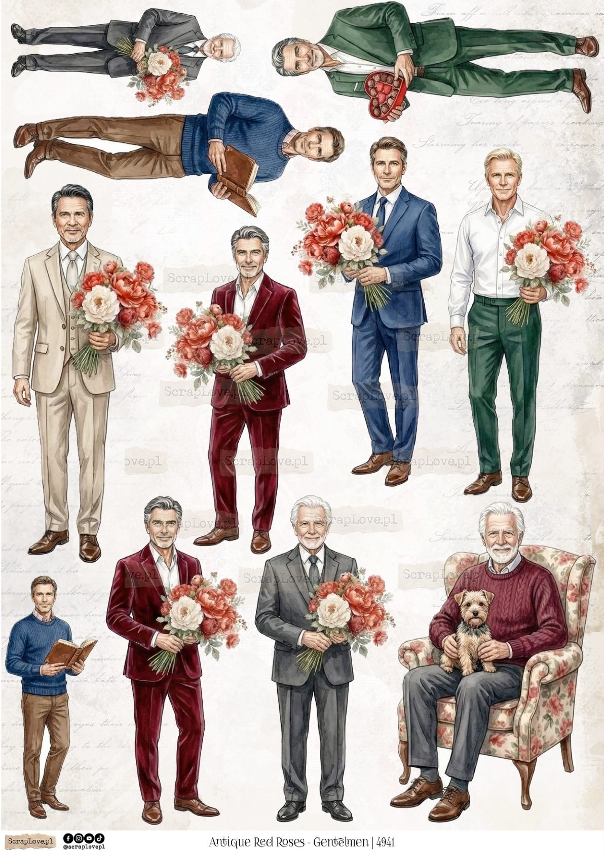 ANTIQUE RED ROSES GENTLEMEN 1 - 4941- DRUK NA PAPIERZE
