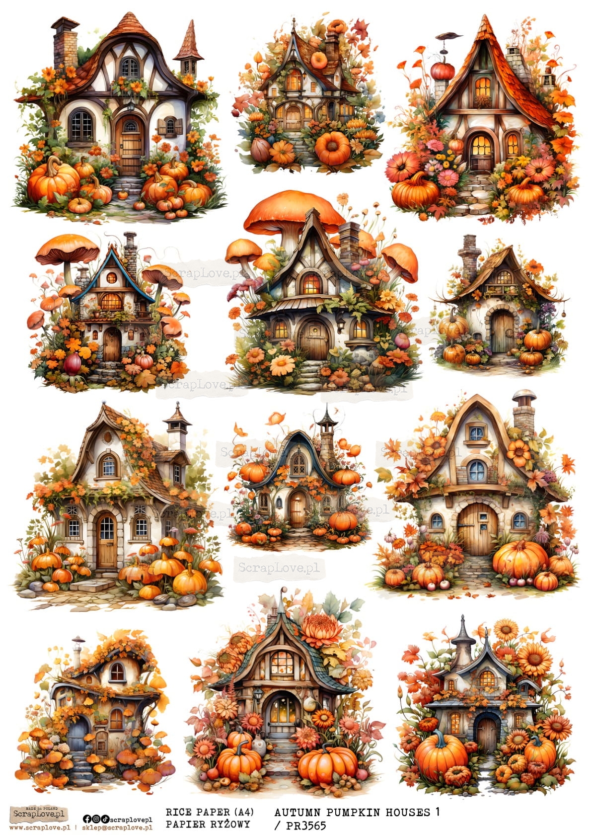 AUTUMN PUMPKIN HOUSES 1 - PAPIER RYŻOWY