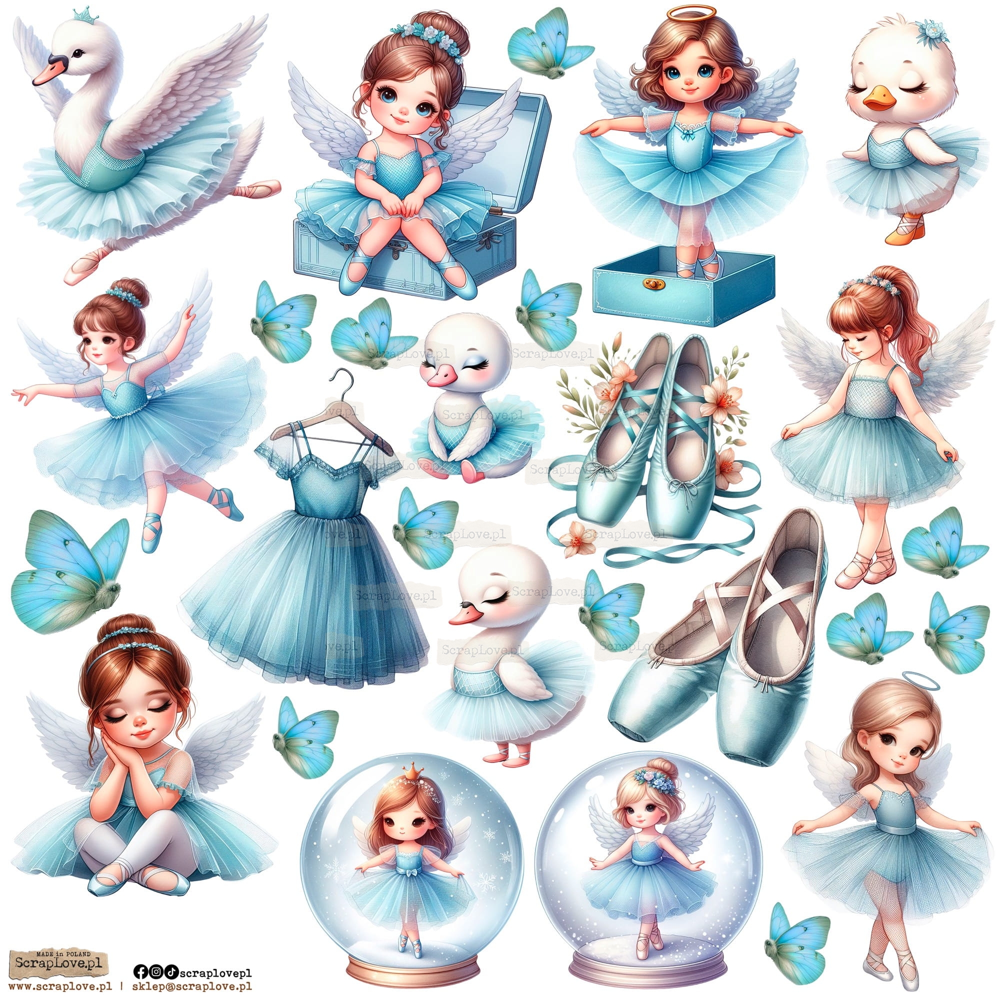 Zestaw elementów samoprzylepnych na arkuszu 24x24cm w wersji na papierze lub na przezroczystej folii.