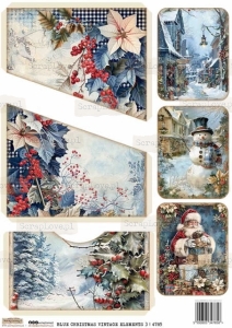 BLUE CHRISTMAS VINTAGE ELEMENTS 3 | NIEBIESKIE ŚWIĄTECZNE RETRO ELEMENTY 3 - 4785 - DRUK NA PAPIERZE