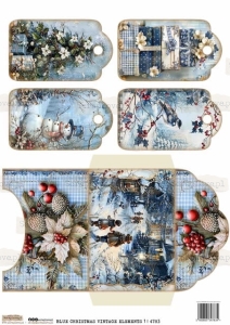 BLUE CHRISTMAS VINTAGE ELEMENTS | NIEBIESKIE ŚWIĄTECZNE RETRO ELEMENTY 1 - 4783 - DRUK NA PAPIERZE