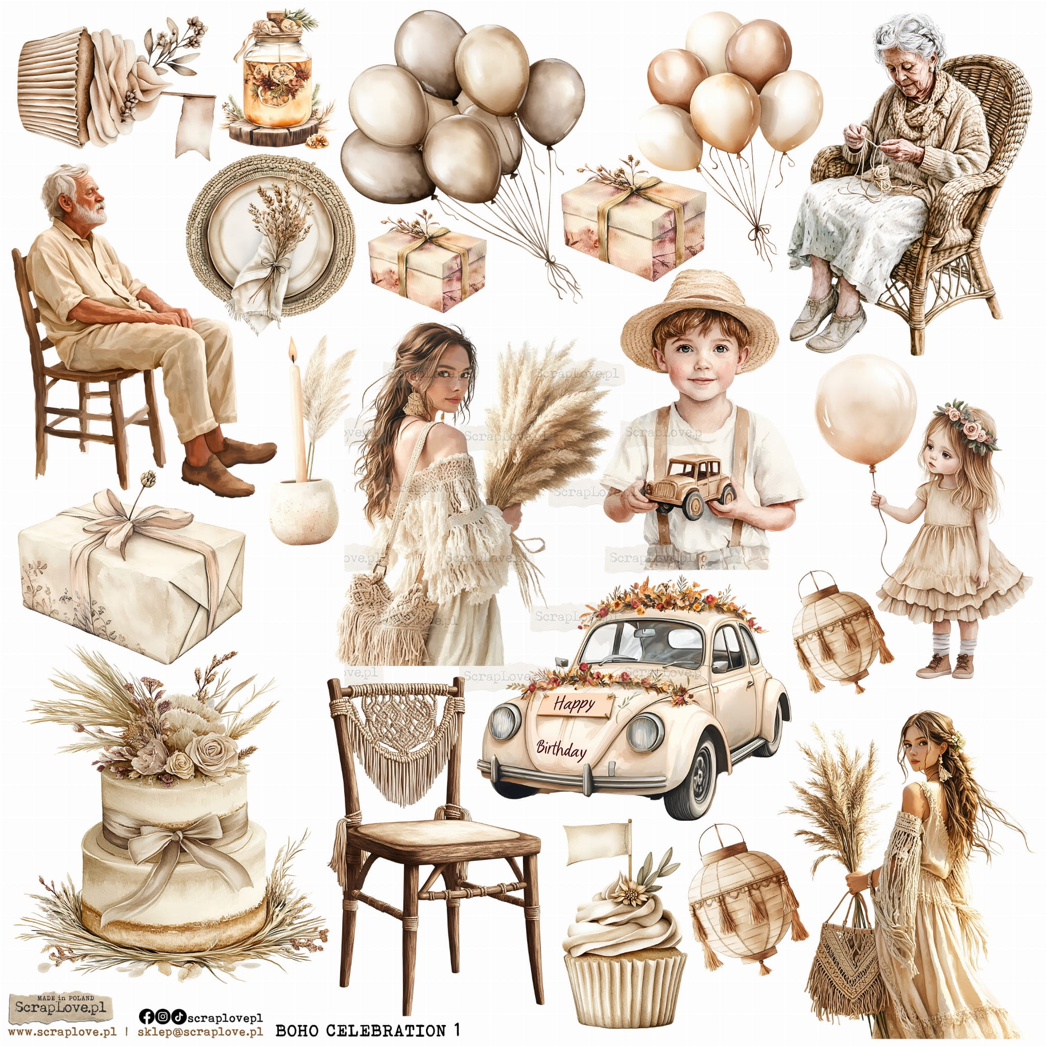 Zestaw samoprzylepnych elementów na arkuszu 24x24cm