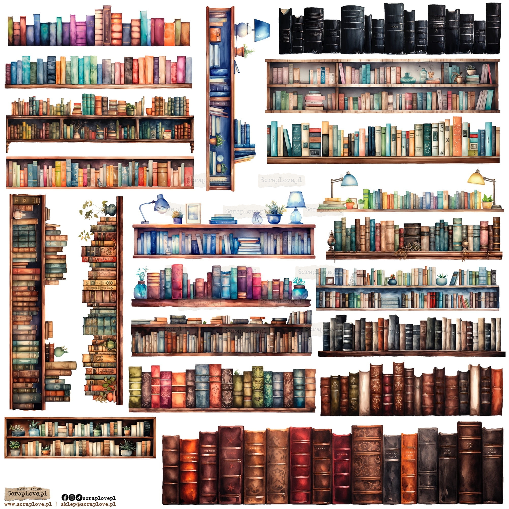 Zestaw elementów samoprzylepnych na arkuszu 24x24cm w wersji na papierze lub na przezroczystej folii.