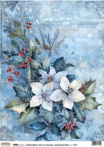 CHRISTMAS BLUE FLORAL BACKGROUND 4 | ŚWIĄTECZNE NIEBIESKIE KWIATOWE TŁO 4 - 4715 - DRUK NA PAPIERZE
