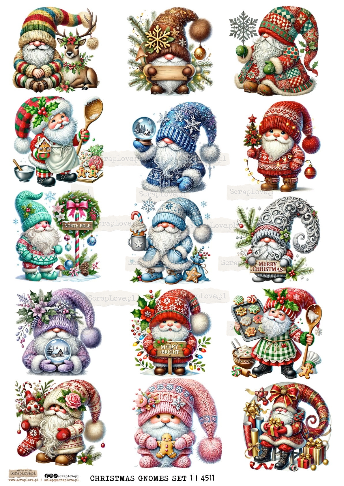 CHRISTMAS GNOMES SET 1 | ŚWIĄTECZNE SKRZATY 1 - 4511 - DRUK NA PAPIERZE - PAPER PRINT