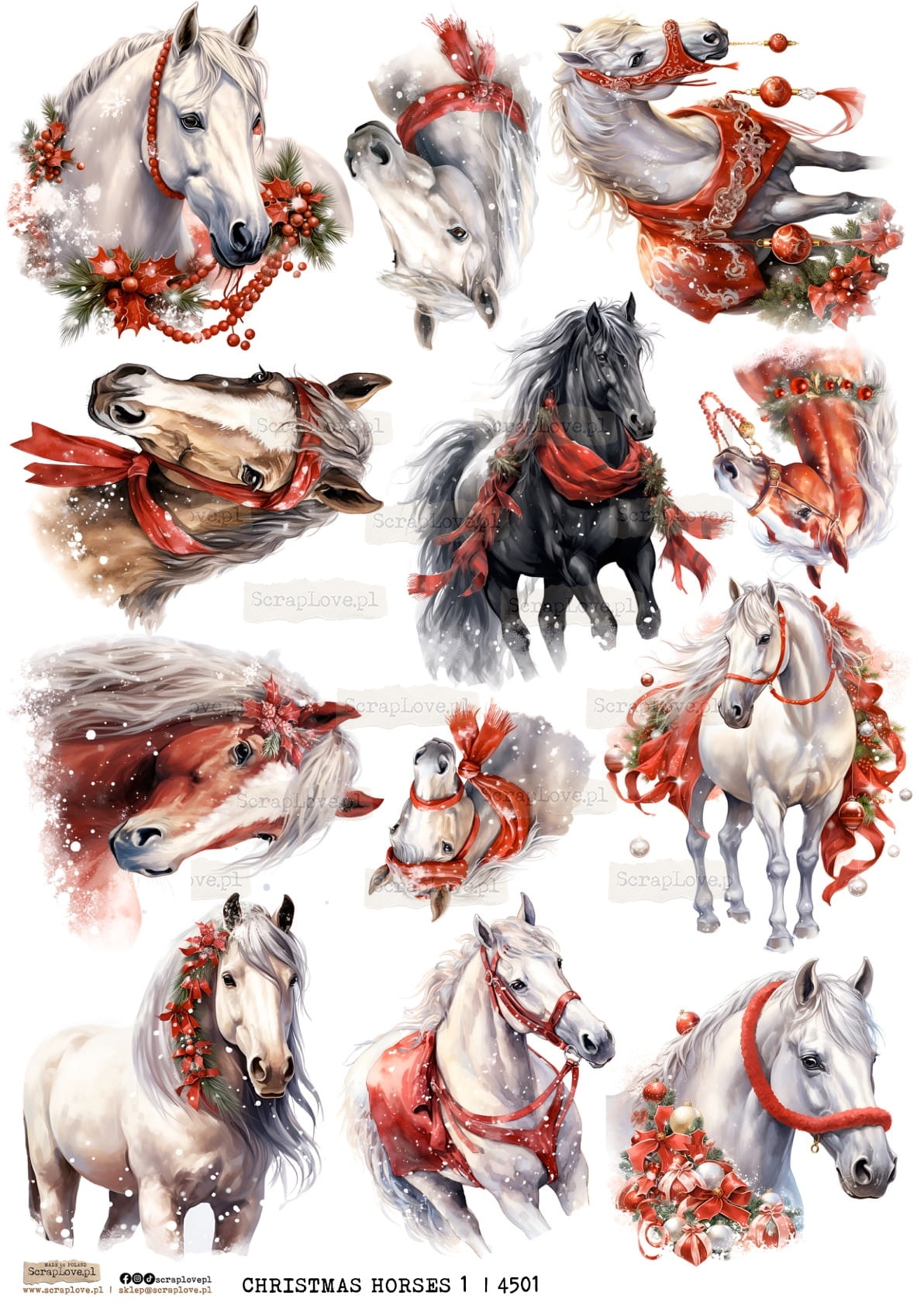CHRISTMAS HORSES 1 | ŚWIĄTECZNE KONIE 1 - 4501 - DRUK NA PAPIERZE - PAPER PRINT