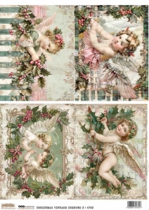 CHRISTMAS VINTAGE CHERUBS 2 | ŚWIĄTECZNE RETRO CHERUBINY 2 - 4782 - DRUK NA PAPIERZE