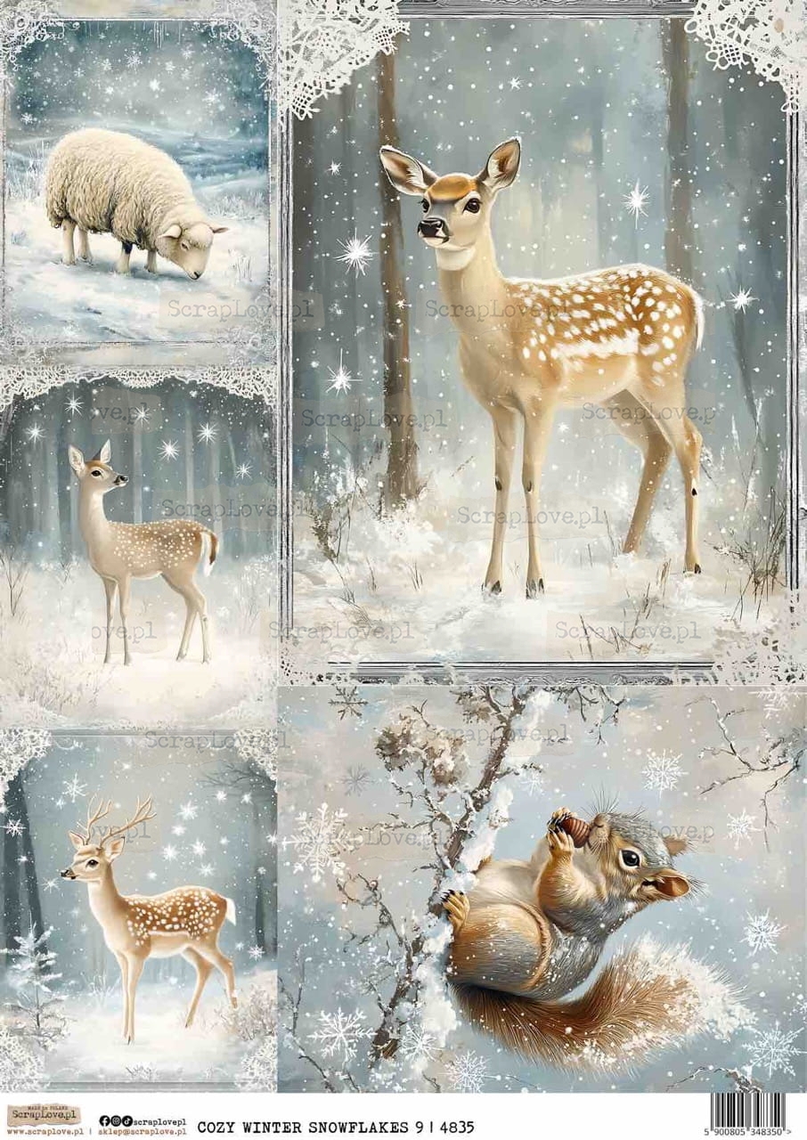 cozy winter, snowflakes, forest animals, winter deer, reindeer, fawn, squirrel, sheep, woodland winter, snowy forest, cozy nature, winter wonderland, soft winter colors, peaceful winter, rustic winter, hygge nature, watercolor animals, gentle tones, winter nostalgia, winter serenity, enchanted forest, handmade crafts, scrapbook paper, winter illustration, snow art, cozy woodland, frosty forest, Christmas nature, vintage winter, snowy wildlife