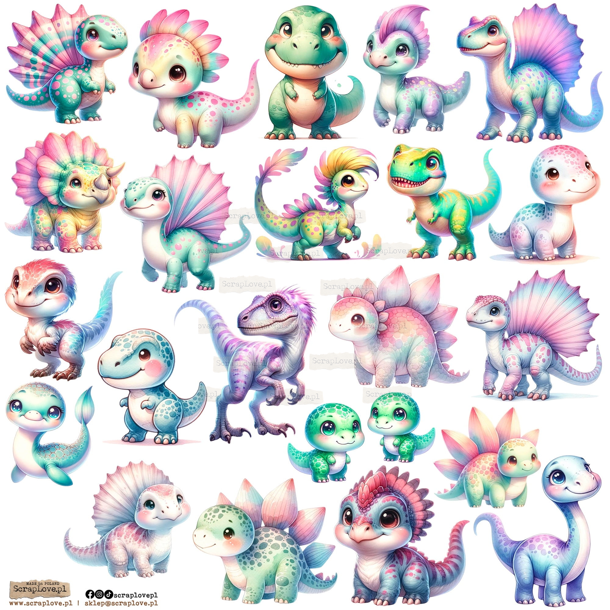 Zestaw elementów samoprzylepnych na arkuszu 24x24cm w wersji na papierze lub na przezroczystej folii.
