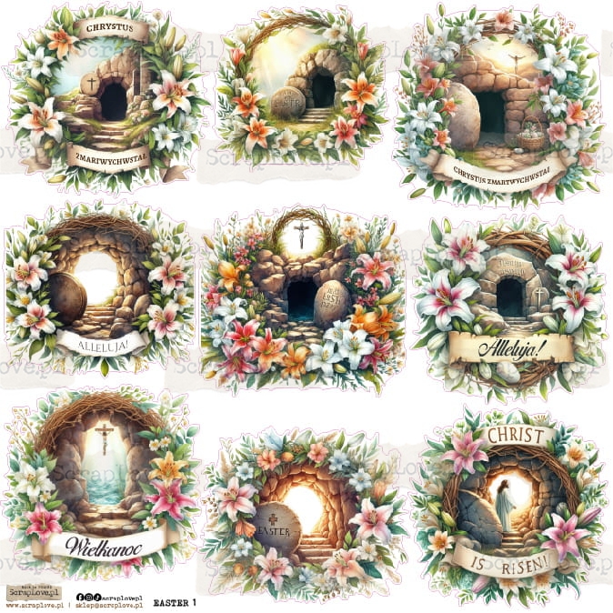 Zestaw elementów samoprzylepnych na arkuszu 24x24cm w wersji na papierze lub na przezroczystej folii.