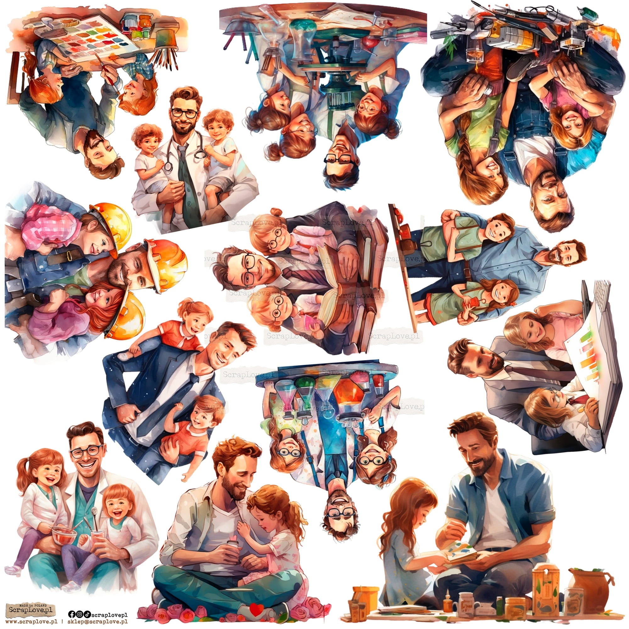 Zestaw elementów samoprzylepnych na arkuszu 24x24cm w wersji na papierze lub na przezroczystej folii.