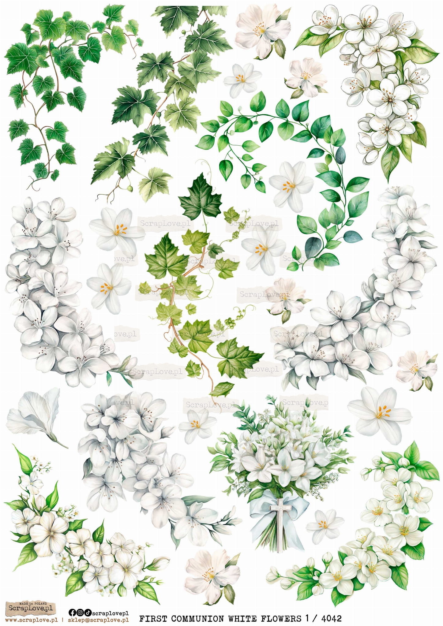 FIRST COMMUNION WHITE FLOWERS 1 - WYDRUK NA PAPIERZE