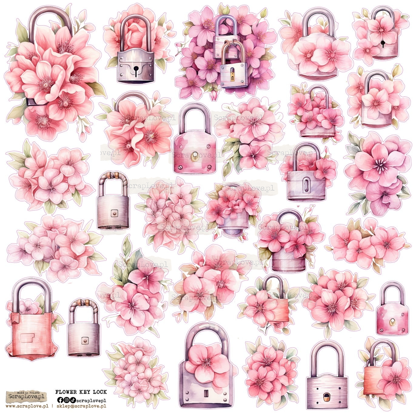 Zestaw elementów samoprzylepnych na arkuszu 24x24cm w wersji na papierze lub na przezroczystej folii.