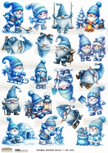 GNOMES WINTER BLUE 1 - WYDRUK NA PAPIERZE