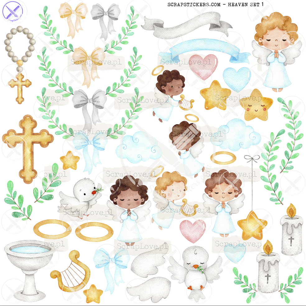 angels, angel, angel halo, halo, harfy, harfa, harp, harps, first communion, communion, komunia, pierwsza komunia, pierwsza komunia święta, anioł, anioły, aniołek, aniołki, liście, wstęgi, różaniec, rosary, religijne, religious, niebo, heaven