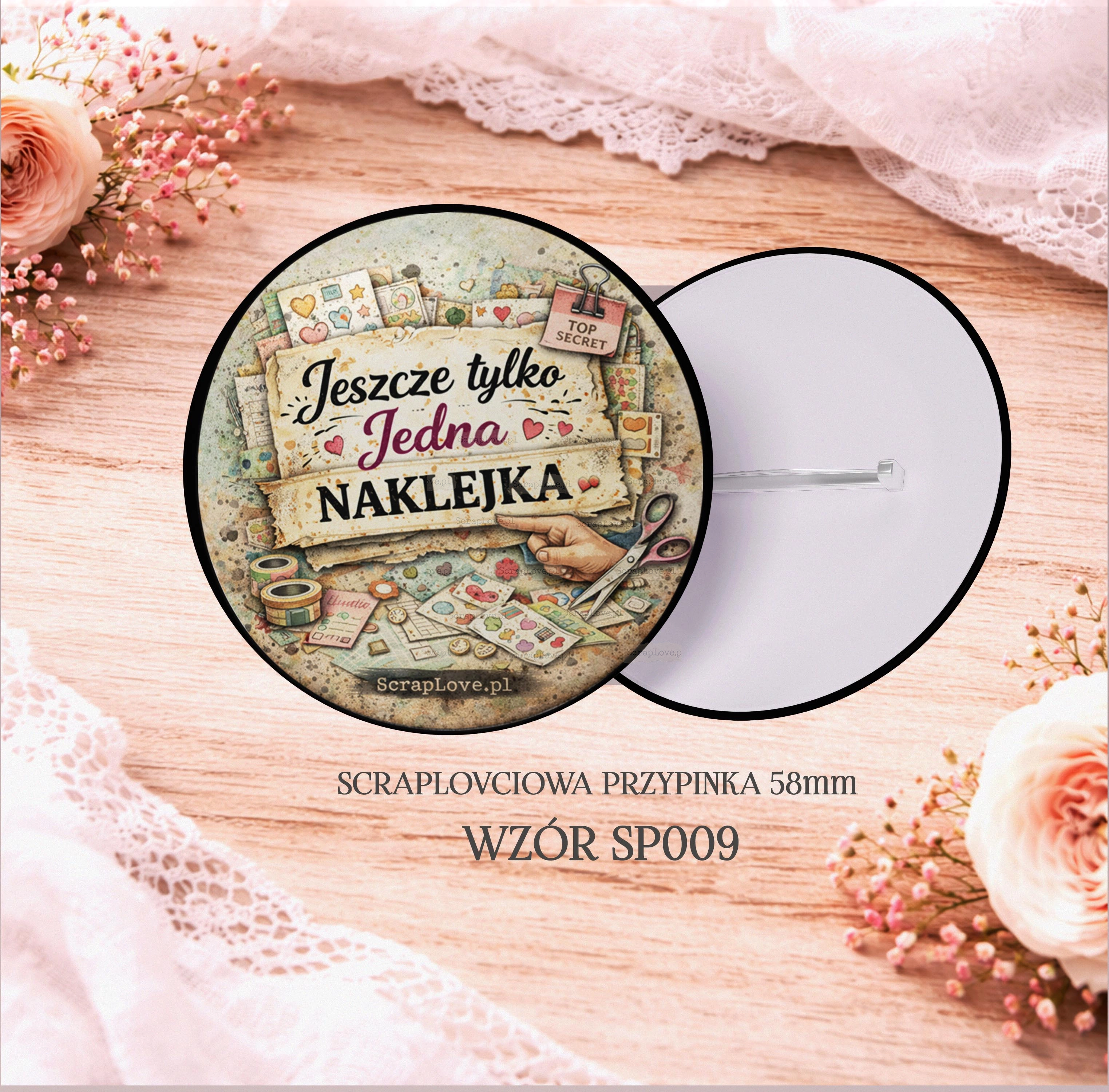 JESZCZE TYLKO JEDNA NAKLEJKA - PRZYPINKA SCRAPLOVCIOWA - SP009