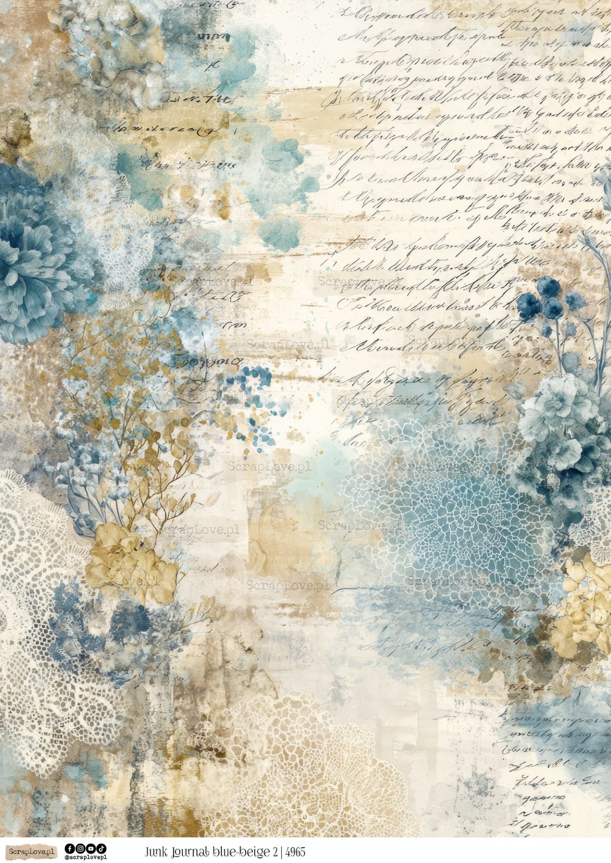 JUNK JOURNAL BLUE BEIGE 2 - 4965 - DRUK NA PAPIERZE