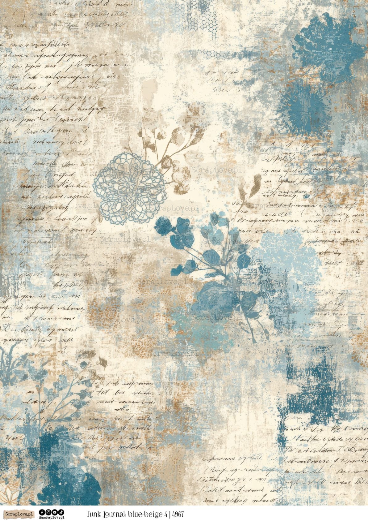 JUNK JOURNAL BLUE BEIGE 4 - 4967 - DRUK NA PAPIERZE