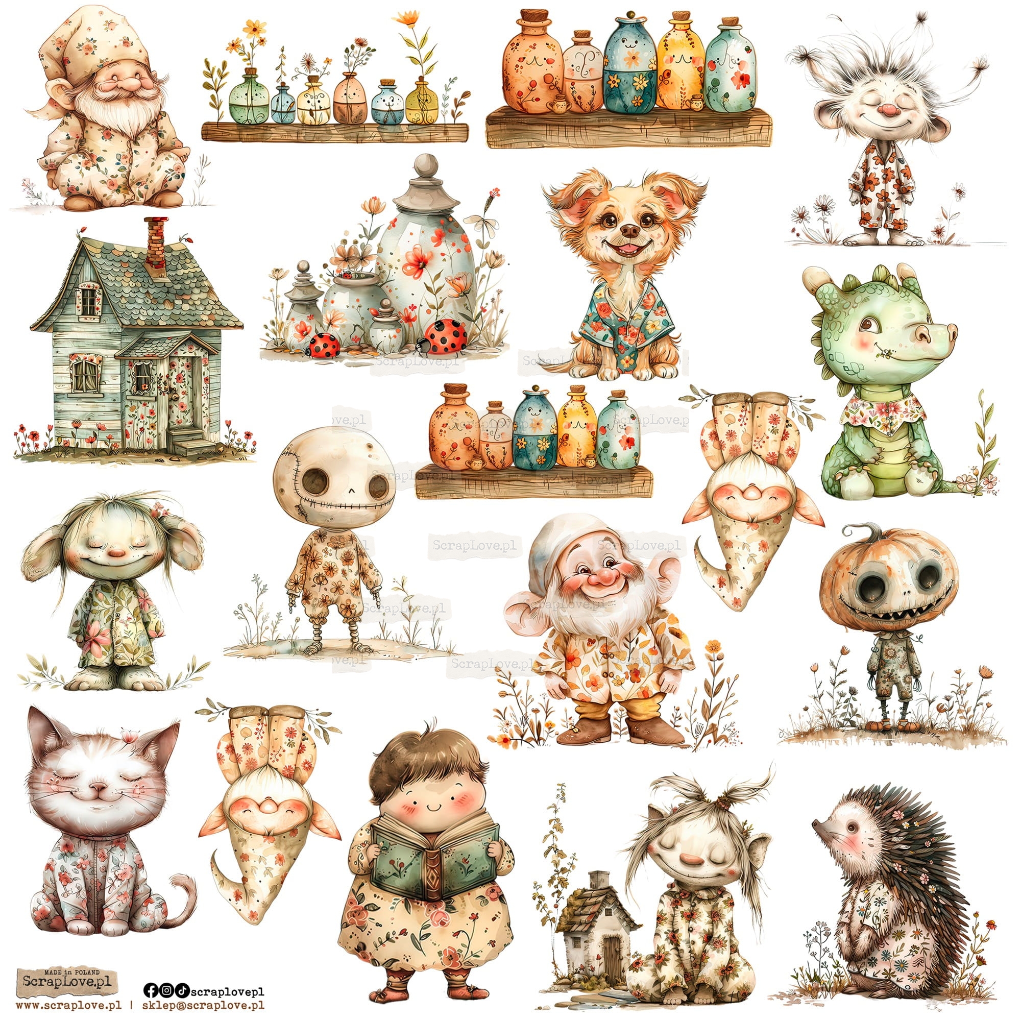 Zestaw samoprzylepnych elementów na arkuszu 24x24cm