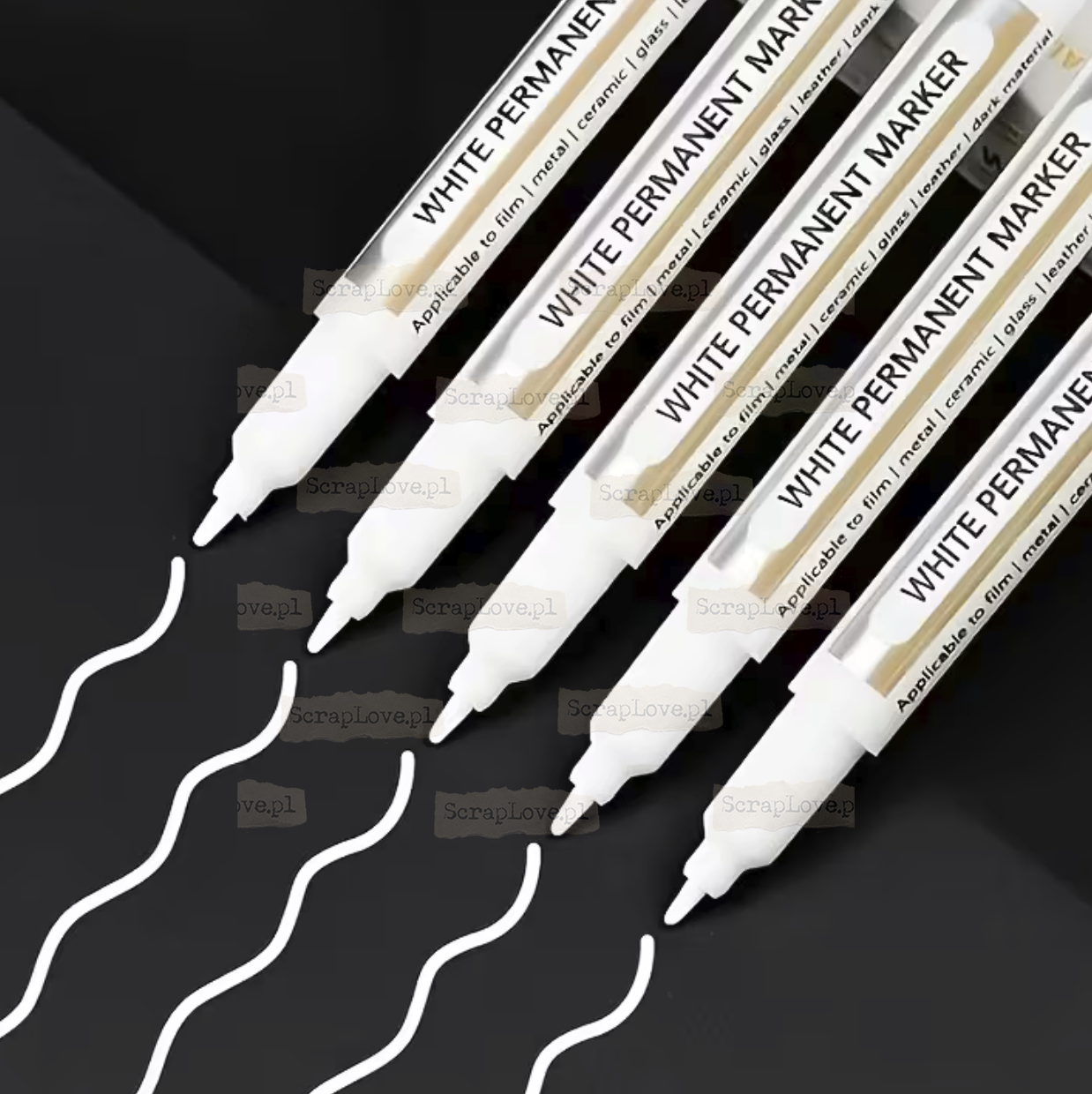 Biały marker do trwałego oznaczania, szybkoschnący, nieblaknący z cienką końcówką.