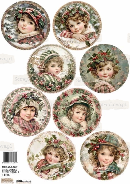 MEDALLION CHRISTMAS CUTE GIRL 1 | MEDALIONY ŚWIĄTECZNE SŁODKIE DZIEWCZYNKI 1 - 4726 - DRUK NA PAPIERZE