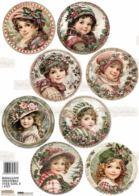 świąteczne medaliony, Christmas medallions, dziewczynka retro, vintage girl, bożonarodzeniowy portret, Christmas portrait, wieniec świąteczny, Christmas wreath, holly, ostrokrzew, jagody, berries, zimowy klimat, winter atmosphere, ilustracja retro, vintage illustration, świąteczna ilustracja, Christmas illustration, bożonarodzeniowy styl, Christmas style, urocza dziewczynka, cute girl, świąteczne ubrania, Christmas clothes, nostalgiczny klimat, nostalgic style, stara kartka świąteczna, vintage Christmas card, portret dziecka, child portrait, boże narodzenie, Christmas, święta, holidays, świąteczny projekt, festive design, scrapbooking, cardmaking, dekoracja, decoration, klasyczny styl, classic style, delikatne kolory, soft colors, DECOUPAGE, PAPIER RYŻOWY, RICE PAPER, WYDRUK NA PAPIERZE, PAPER PRINT, 250G
