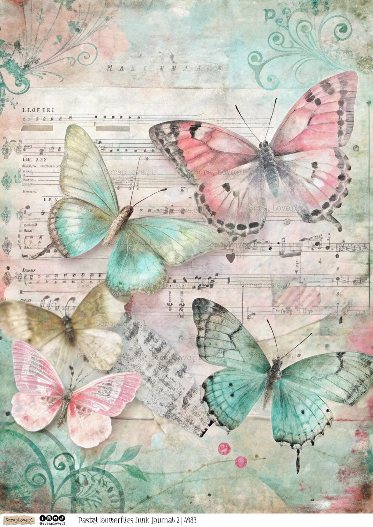 PASTEL BUTTERFLIES JUNK JOURNAL 2 - 4983 - DRUK NA PAPIERZE