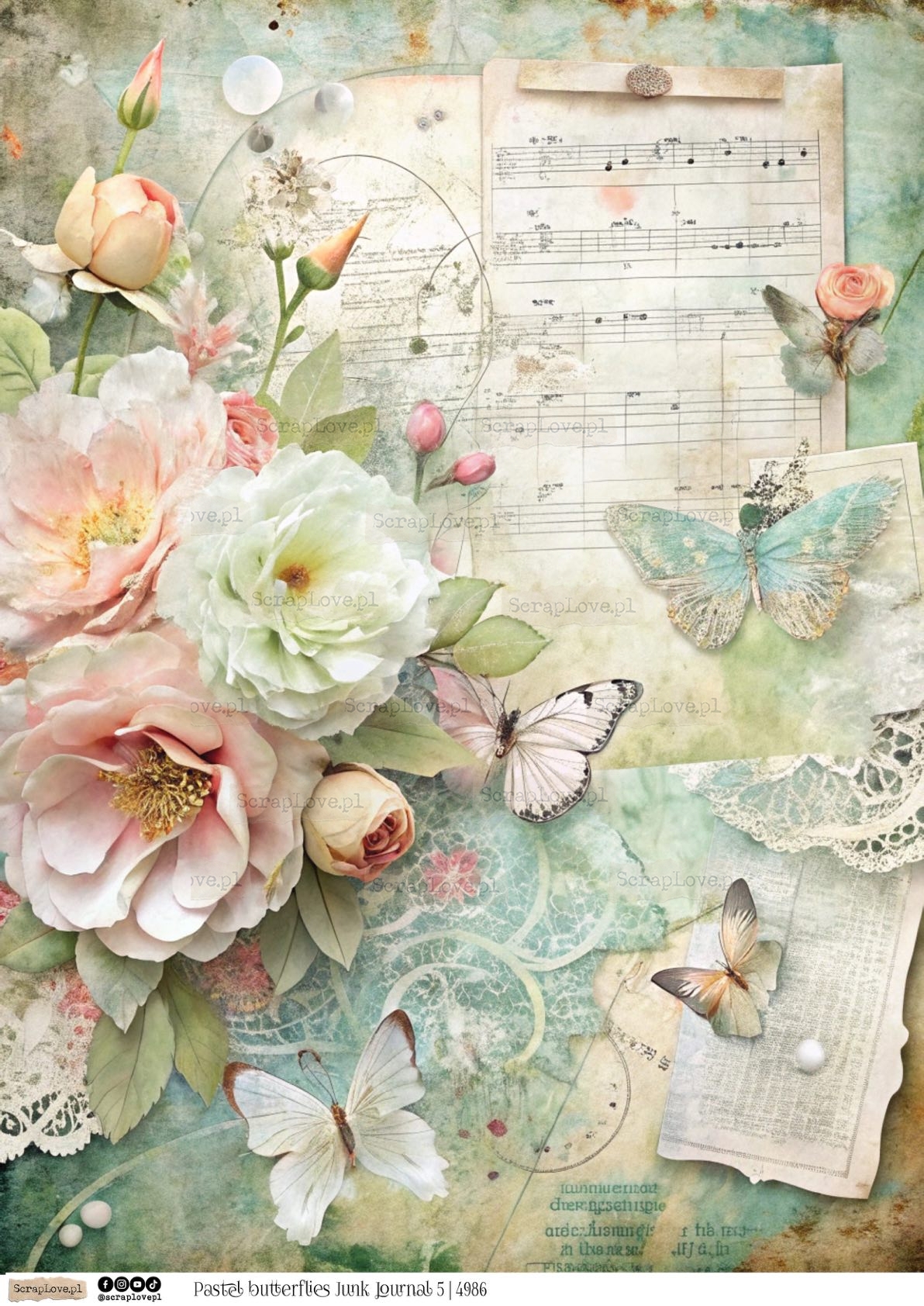 PASTEL BUTTERFLIES JUNK JOURNAL 5 - 4986 - DRUK NA PAPIERZE