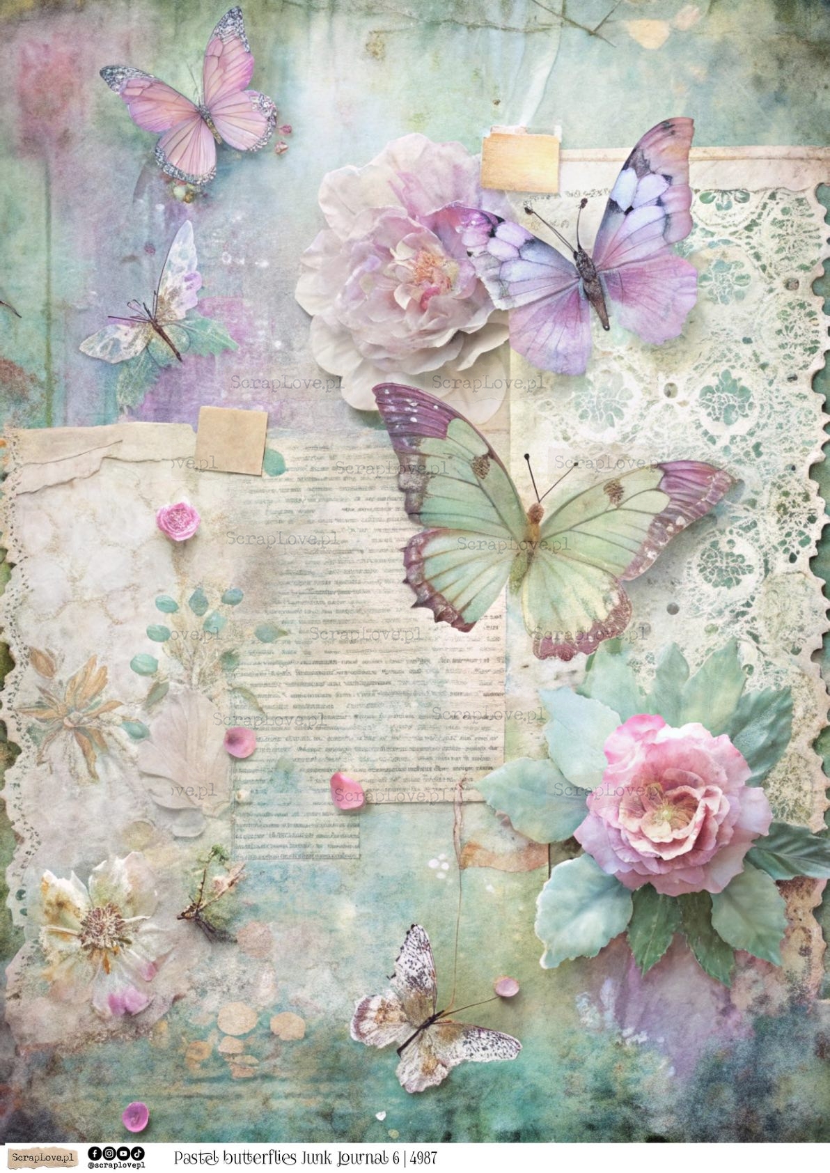PASTEL BUTTERFLIES JUNK JOURNAL 6 - 4987 - DRUK NA PAPIERZE