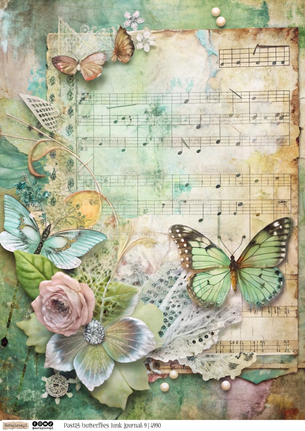 PASTEL BUTTERFLIES JUNK JOURNAL 9 - 4990 - DRUK NA PAPIERZE