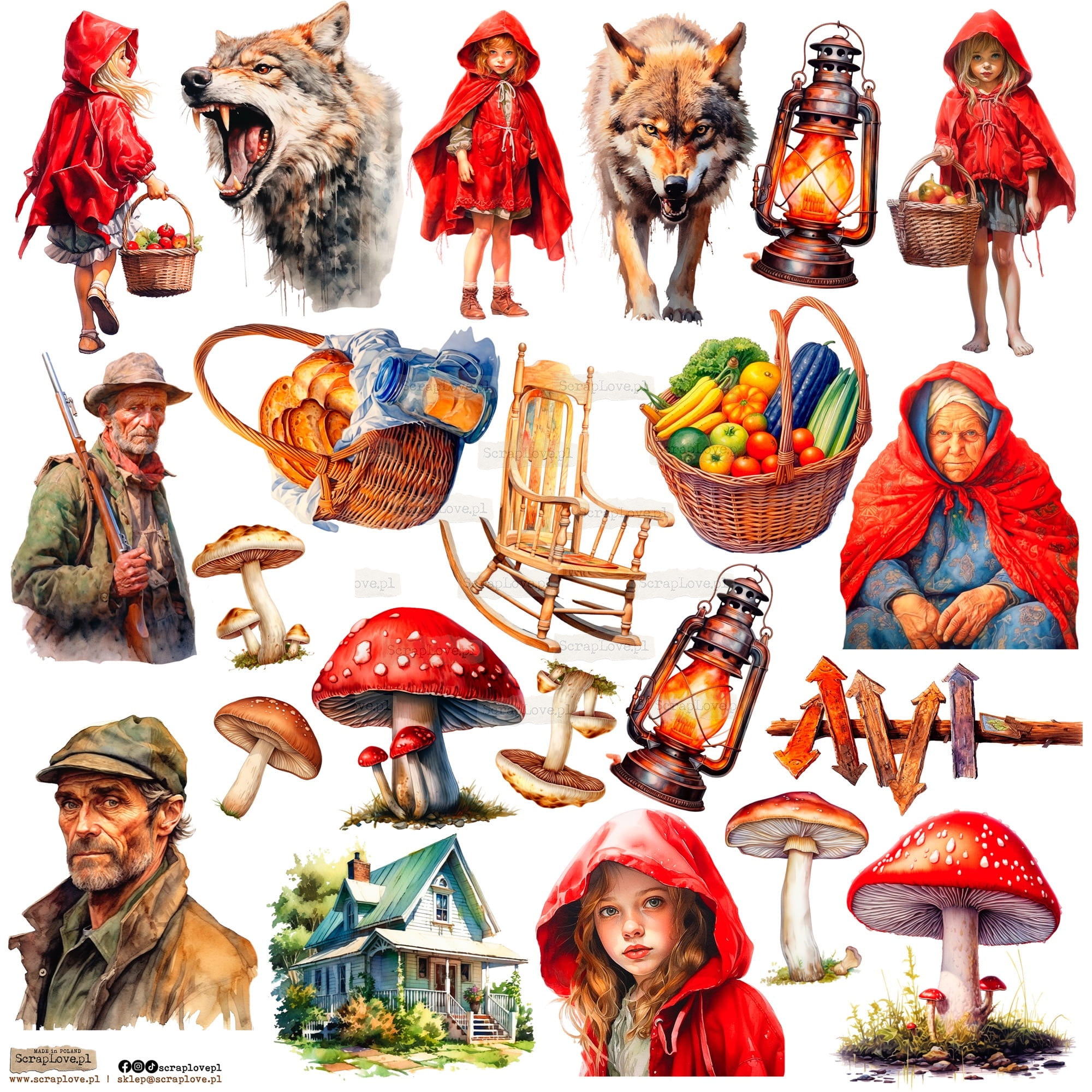 Zestaw elementów samoprzylepnych na arkuszu 24x24cm w wersji na papierze lub na przezroczystej folii.