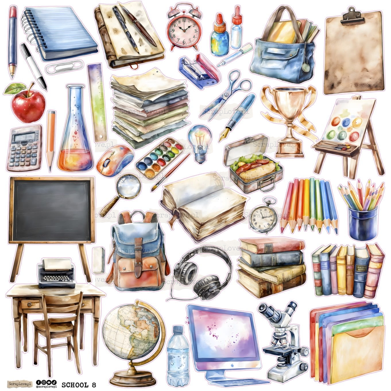 Zestaw elementów samoprzylepnych na arkuszu 24x24cm w wersji na papierze lub na przezroczystej folii.
