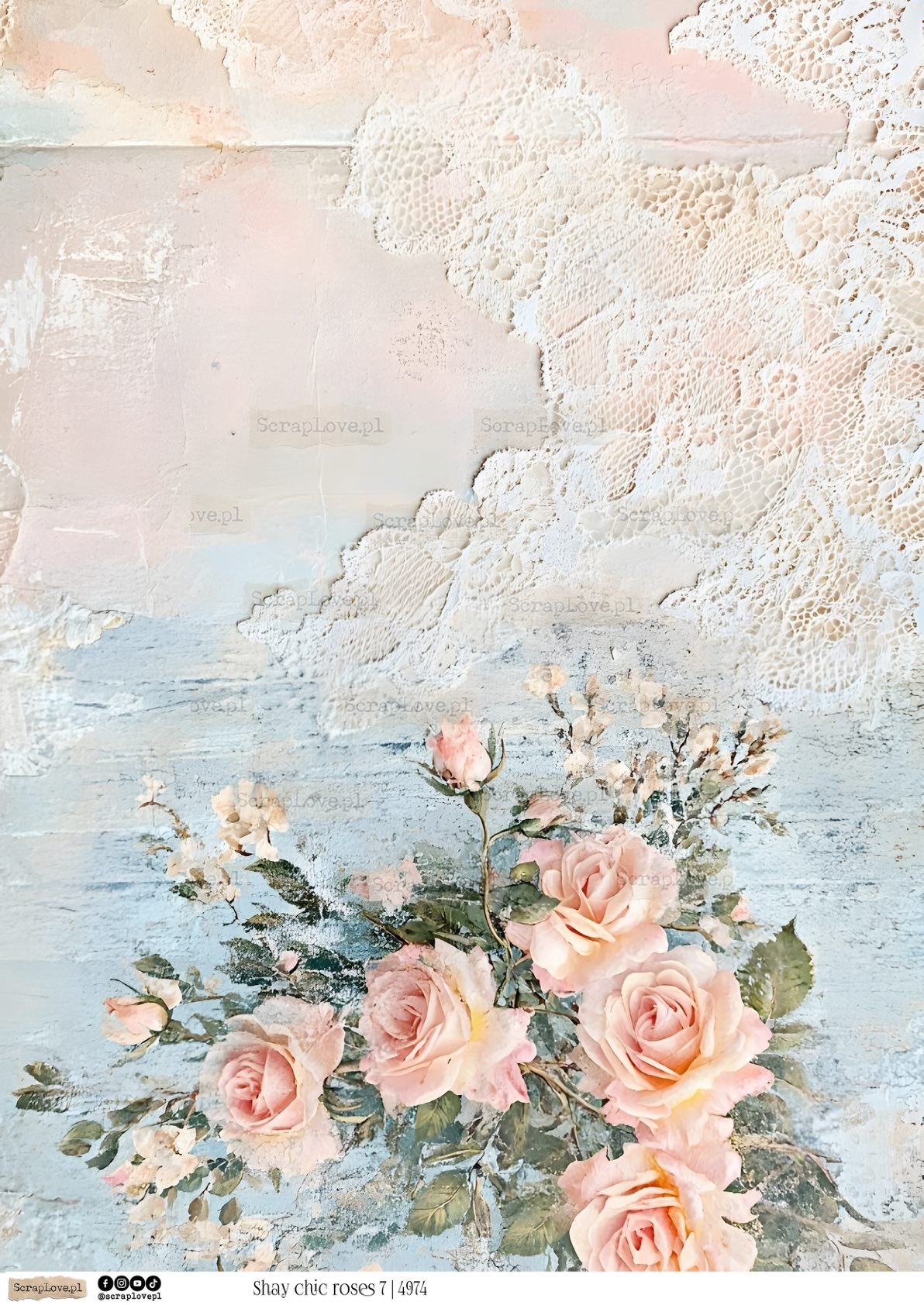 SHABBY CHIC ROSES 7 - 4974- DRUK NA PAPIERZE